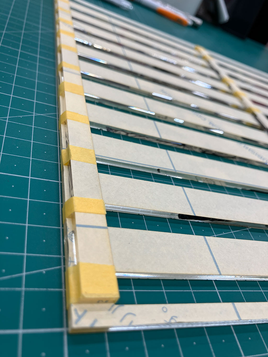 ボールペンを乗せる溝をカットして作ります。